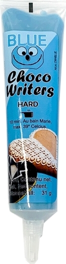 Csokoládémáz tubusban cupcakes, cake pops és sütemények díszítéséhez. Használja. Összetevők: cukor, növényi olaj (pálma, pálma), sovány tejpor, emulgeálószer E322 (szójalecitin), só, aroma, színezék E133. Tápértékek 100 g-ban: energia 2450 kJ/580 kcal, zsír 38 g (ebből telített zsírsavak 32 g), szénhidrát 58 g (ebből cukor 58 g), rost <0,5 g, fehérje 3 g, só <0,2 g.