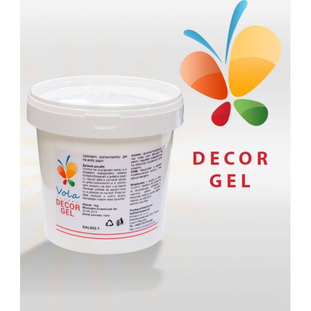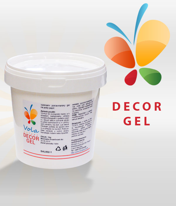 A Decor Gel-t arra használják, hogy az ehető papírt a tortahéjra ragasszák, és hogy kiemeljék a nyomtatás színeit az ehető papíron. A gélt vékony rétegben kenjük fel a torta felületére, majd az ehető papírt helyezzük rá, és óvatosan nyomjuk rá. A színek kiemelése érdekében a képet egyenletesen bevonjuk egy vékony réteg zselével. Az elkészített tortát az ehető papírdíszítéssel együtt 3 órán át a hűtőszekrényben hagyjuk, hogy a nyomtatott papír megpuhuljon.
