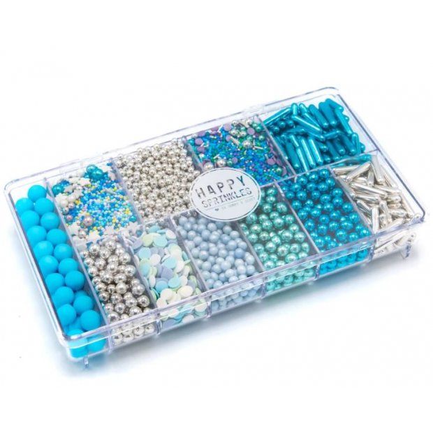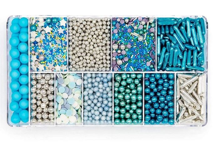 A tenger hívogat! Minden, amit a (tengeri) szíved kíván Kedvenc díszeink és cukorgyöngyök keveréke fényes metálfényben és kékben. Tökéletes minden olyan dekorációhoz, amely a nyár, a nap és a tenger világába repíti boldog ízlelőbimbóit. A kis hableány már alig várja a víz alatti alkotásaidat.