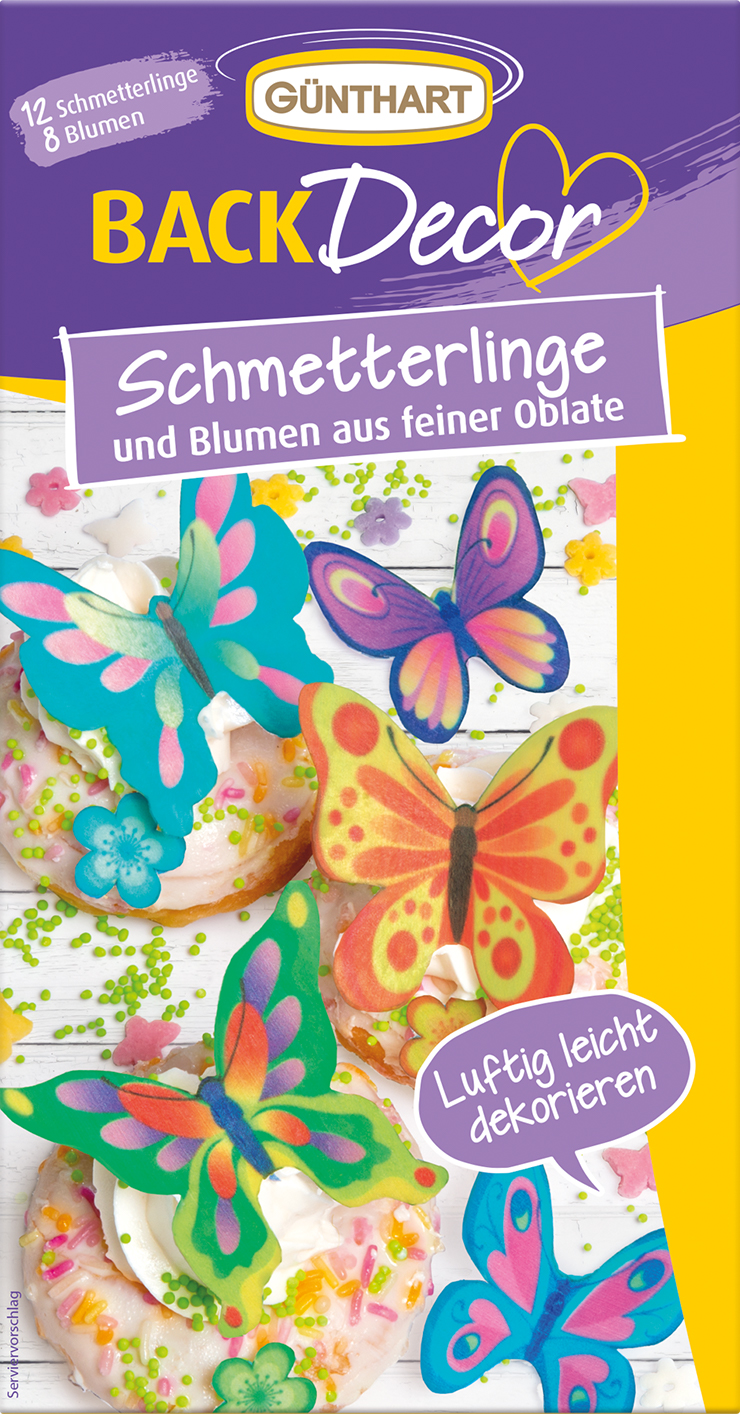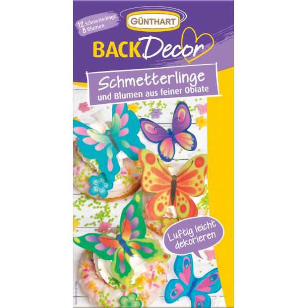 Az ehető papírt a cupcake-re is felhelyezheted, a csokoládét vagy a tortát is díszítheted vele. A csomagban 12 darab különböző méretű, különböző színű pillangó és 8 színes virág található. Az ehető papír már eleve ki van vágva, így a pillangókat és a virágokat nem kell kivágnod.