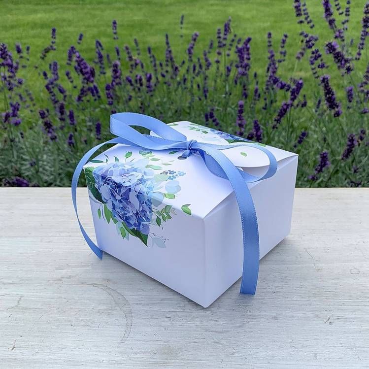 Minden menyasszony rajongani fog ezért a romantikus stílusú dobozért! A csodálatos hortnziemi papír esküvői doboz alkalmas esküvői cupcake-ek számára. Élelmiszer minőségű kartonból készült, amely közvetlen élelmiszerrel való érintkezésre engedélyezett. A doboz a motívum tónusában lévő szalaggal záródik. Az esküvői dobozt kibontva, megfelelő hosszúságú szalaggal szállítjuk. Méretek.