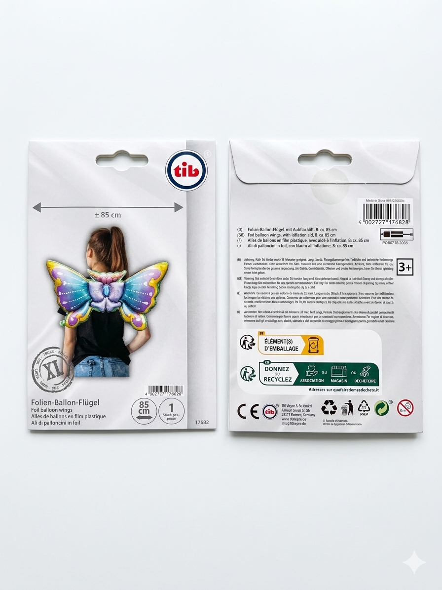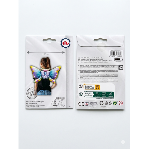 Fólia lufi, szárny alakú, mintázat: pillangó, méret: 85×50 cm