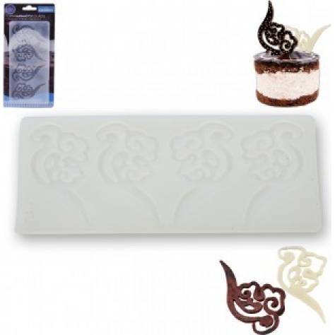 A szilikonforma nagyon rugalmas és tartós. Csak öntse bele a csokoládét, tisztítsa meg egy spatulával, és hagyja megszilárdulni. A kész csokoládéfiligrán könnyen lehúzható a szilikon rugalmasságának és tapadásmentességének köszönhetően. A formát hűtőbe vagy fagyasztóba is teheti.