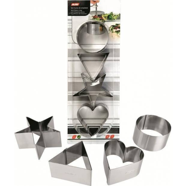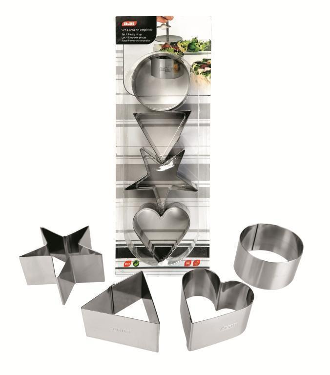 Fantáziadús és vizuálisan eltérő rozsdamentes acélból készült kivágások. Egy készletben egy csillag, egy háromszög, egy szív és egy kerék található.