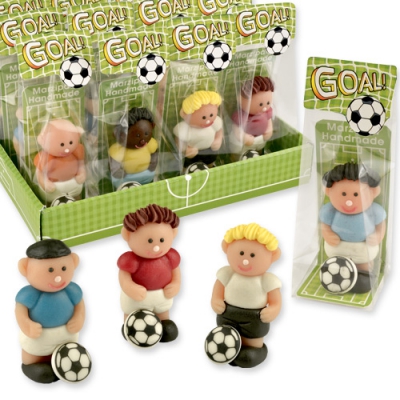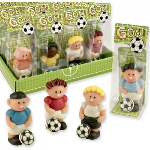 A focisták formájú ehető dekoráció nagyszerű ajándék a marcipánt kedvelő gyerekeknek és felnőtteknek. Minden marcipánfigura celofánzacskóba van csomagolva és szilárd alapra helyezve. Méretei: 30 x 25 x 60 mm, zacskóval együtt: 40 x 37 x 105 mm (24 g).