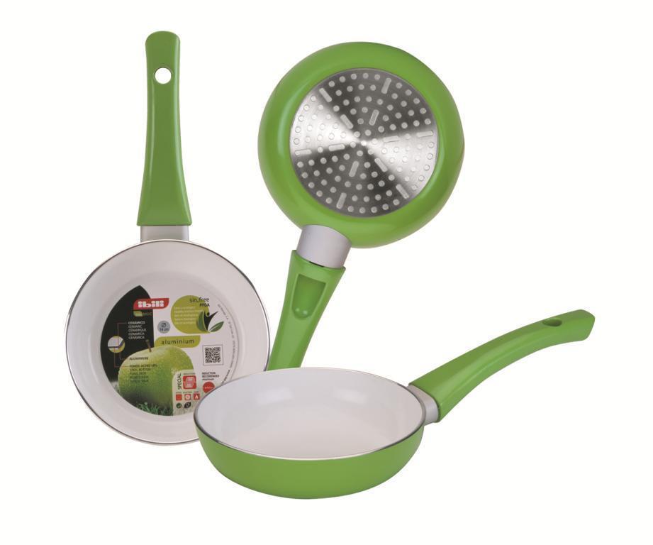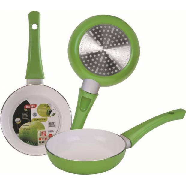 A serpenyő szokatlan, de határozottan vonzó és tökéletesen kiegyensúlyozott kialakítású. Az alsó részen egy fémlemez található, amely gondoskodik a tökéletes hőátadásról. Az alap kiváló minőségű, könnyű alumíniumból készült, így a főzés gyors, gazdaságos és költséghatékony. A serpenyőtest átmérője nem 14 centiméter, és természetesen kellően hosszú fogantyúval rendelkezik, amely szintén érdekes módon van felszerelve. Az almazöld és a szürke kombinációja már első ránézésre is a konyhád fénypontja lesz, nem beszélve arról, ha kipróbálod! A kerámia serpenyő alkalmas indukciós főzőlapon való használatra is.