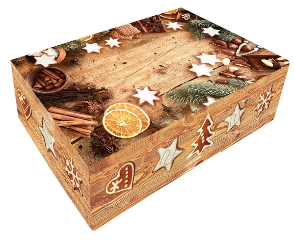 Cukorkás doboz fa díszítéssel karácsonyi asztalra, 22×15×5 cm
