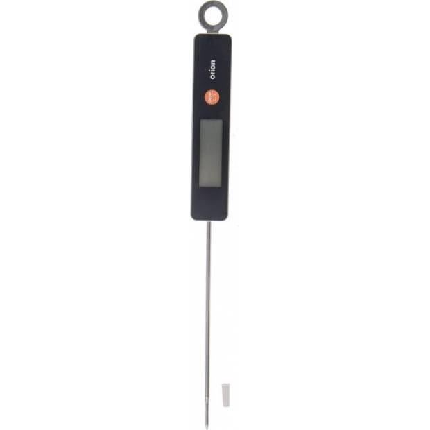Az univerzális hőmérő ételek (sütőn vagy grillen kívüli húsok, italok, sütőolajok, cukrászati készítmények) és a levegő hőmérsékletének mérésére szolgál. Akasztható, digitális kijelzővel, °C és °F formátumban. Mérési tartomány: 0 °C–+250 °C, 32 °F–482 °F. Tápellátás: 1x CR2032 (nem tartozék). Anyag: rozsdamentes acél (s/s 304), műanyag (ABS), fém, szilikon (gomb). Méretek: hossz: 27,5 cm, szélesség: 2,5 cm. Egyszerű kezelés: az ON/OFF gomb a készülék be- és kikapcsolására szolgál; hosszan lenyomva vált ℃ és ℉ között. Kb. 10 perc inaktivitás után automatikusan kikapcsol. Ne tegye sütőbe.