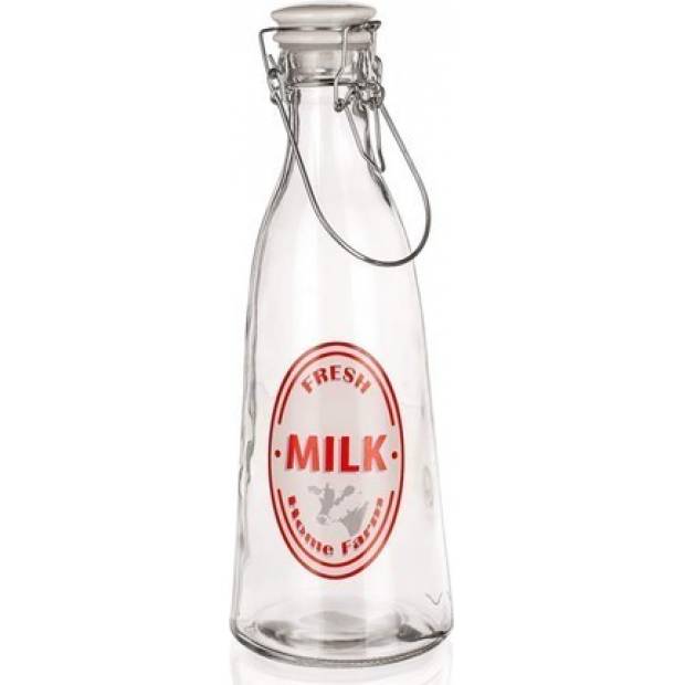 A gyönyörűen kialakított tejesüveg vonzó FRESH MILK dekorációval ideális ajándék a tej szerelmeseinek. A hagyományos retro forma visszarepít nagyanyáink idejébe, legalábbis egy időre. A palack speciális kerámia kupakkal van ellátva, amely megőrzi a tej eredeti tulajdonságait és biztonságos kezelést biztosít. Mosogatógépben való mosogatásra nem alkalmas. Műszaki paraméterek: Magasság (cm): 29,5 Felső átmérő (cm): 4 Alsó átmérő (cm): 10,5 Térfogat (l): 1 Anyag: üveg/kerámia/fém/műanyag Szín: átlátszó Nettó súly (kg): 0,65 Bruttó súly (kg): 0,72