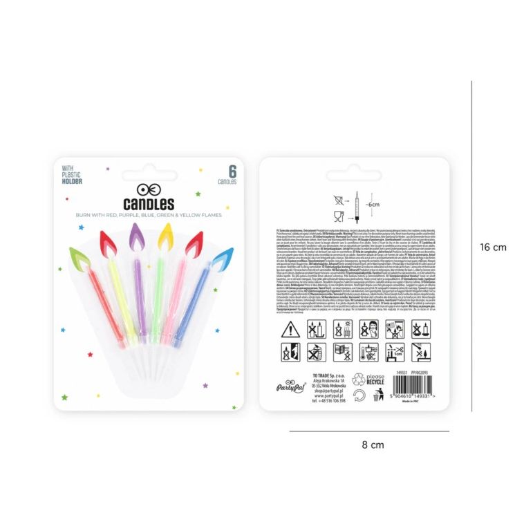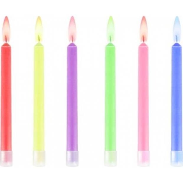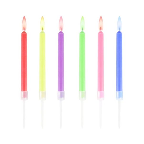 Színes lángú születésnapi gyertya, 6 db