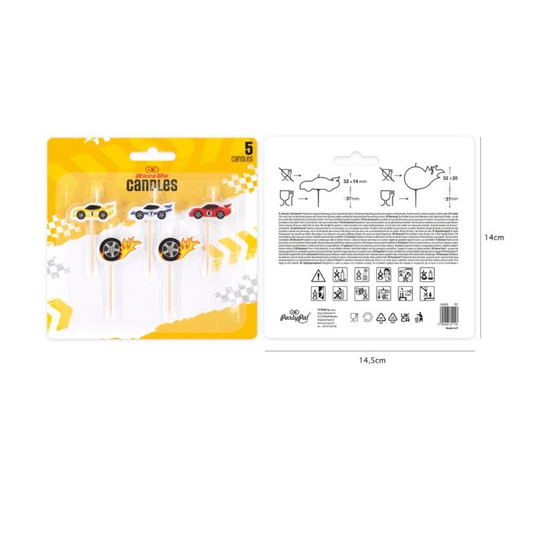 Születésnapi versenyautós gyertya, 5 db