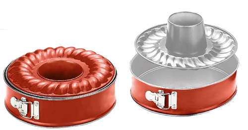 Az összecsukható tortaforma alumíniumból készült. Két tapadásmentes réteggel rendelkezik a könnyű kiborítás érdekében. A kivehető aljának köszönhetően tortaformákat és nem sütött desszerteket, például sajttortát készíthet. Egy tartozék hozzáadásával bundt tortaformává alakíthatja. A forma mosogatógépben mosható. Bármilyen sütőhöz alkalmas.