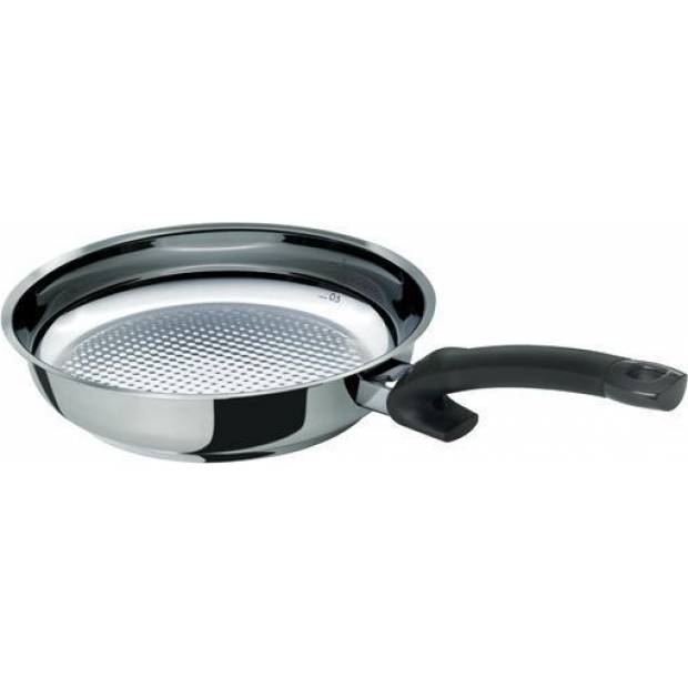 Fedél nélküli rozsdamentes acél serpenyő speciális SuperThermic aljjal és Novogril belső felülettel, amely egyenletes és gyors hőeloszlást és gazdaságos sütést garantál égés nélkül. Minden típusú hőforráson használható, beleértve az indukciót is, és mosogatógépben mosható.