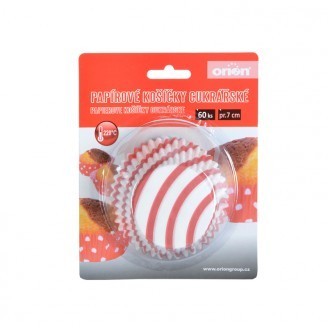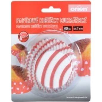 Cukrászsütemények pergamenpapírból, színes díszítéssel (fehér sütemény piros csíkkal). A muffinok muffinok vagy cupcake-ek sütéséhez és sütetlen desszertek tálalásához használhatóak. A készletben 60 muffin található.