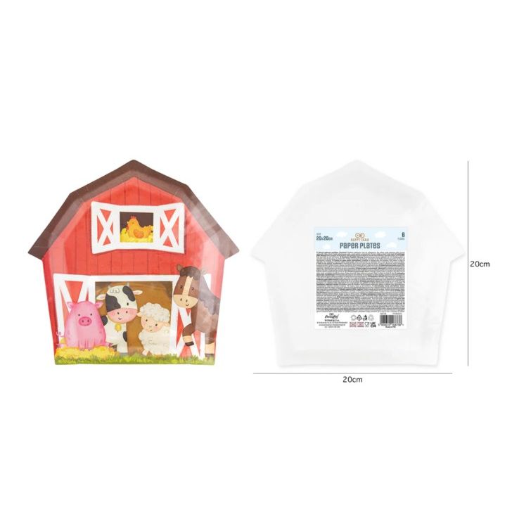 Papírtányérok, farmermintás, 6 db, 20×20 cm