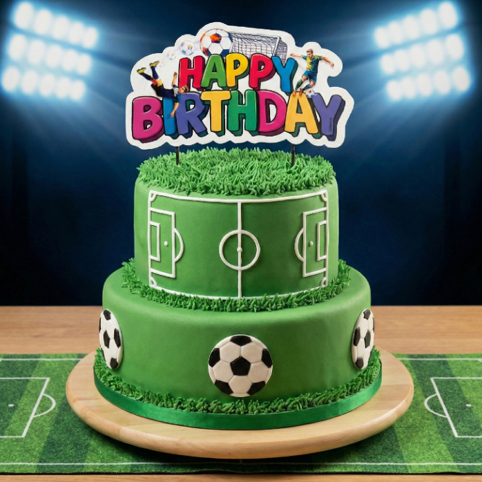 Papír születésnapi tortadísz, labdarúgás, átmérő: 16,5 cm