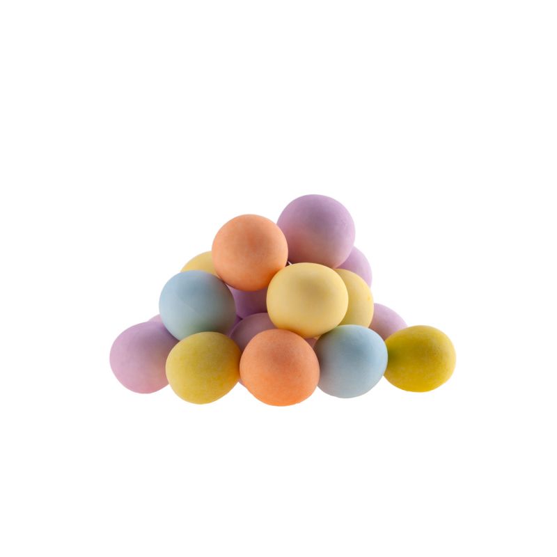 A ropogós csokoládéval bevont golyók pasztell színekben nagyszerű választás cupcake-ek, sütemények vagy csészék díszítésére. Ez egy kész termék, alkalmazás előtt nincs szükség további befejezésre. A golyó mérete körülbelül 1,5 cm.