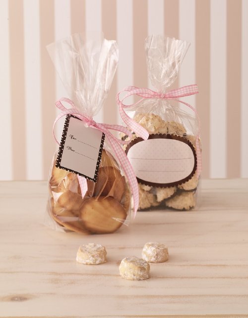 Ezzel a készlettel minden alkalomra tökéletes ehető ajándékokat készíthet. A celofánzacskók átlátszóak, és desszertjei gyönyörűen kiemelkednek bennük. A matricákra írhat dedikációt, majd csak kössön egy szalagot a zacskóra, és máris kész az ajándék.