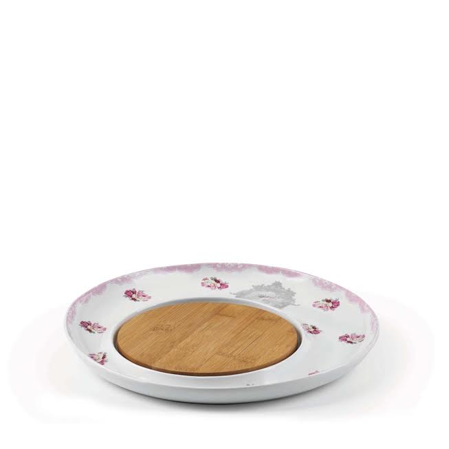 A kerámiatányér szép kék díszítéssel és fából készült középponttal rendelkezik. Alkalmas a kedvenc sajtok vágására és tálalására. A tányér mosható, nagyon elegáns megjelenésű.
