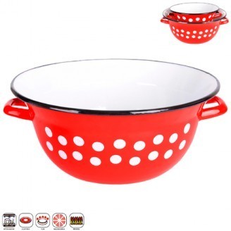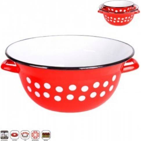 Klasszikus tésztakészítő tál fogantyúval a tészta előkészítéséhez. A piros zománcozott, fehér pöttyökkel ellátott tál zöldség vagy gyümölcs tárolására is használható, de akár mosogatóként is mosogathat. A kiváló minőségű zománcozott felület nagyon könnyen mosható.