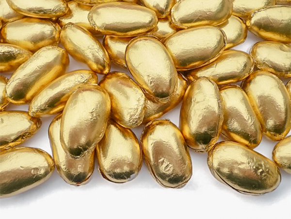 A finomra pörkölt mandulát cukormázban aranyszínű fóliával borítják. A fóliát fogyasztás előtt le kell húzni. Ideális ajándék esküvői vendégeknek és más alkalmakra.