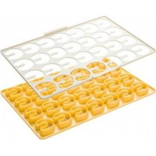 Kiválóan alkalmas vaníliatekercsek gyors elkészítéséhez, egyszerre akár 28 darab cukorkát is vág. Kivehető béléssel rendelkezik a maradék tészta könnyű eltávolítása érdekében. Prémium minőségű tartós műanyagból készült, mosogatógépben mosható. Méretek: 33 x 23 cm