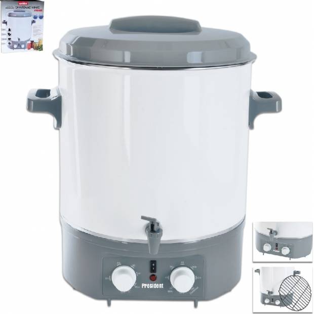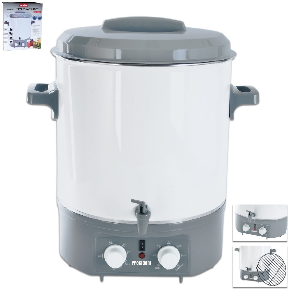 Főzöl? Akkor nem hiányozhat a minőségi felszerelés, amelyhez minden bizonnyal ez a sokoldalú elektromos gyorsfőző is tartozik. A könnyen tisztítható zománcozott felülettel rendelkező edény számos olyan funkcióval rendelkezik, amelyek a lehető legkönnyebbé teszik a konzervkészítést. A 27 literes űrtartalom teljesen elegendő a normál konzervfőzéshez - a fazékban például egyszerre 12 darab 0,75 literes üveg fér el -, az üvegek magassága 13,5 centiméter. Az edény teák, forralt bor és egyéb forró italok melegítésére is használható.