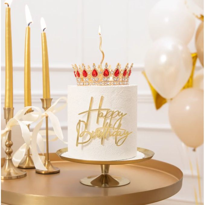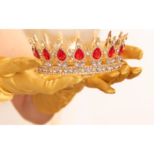 Arany koronával díszített, piros és ezüst kristályokkal – 15 cm
